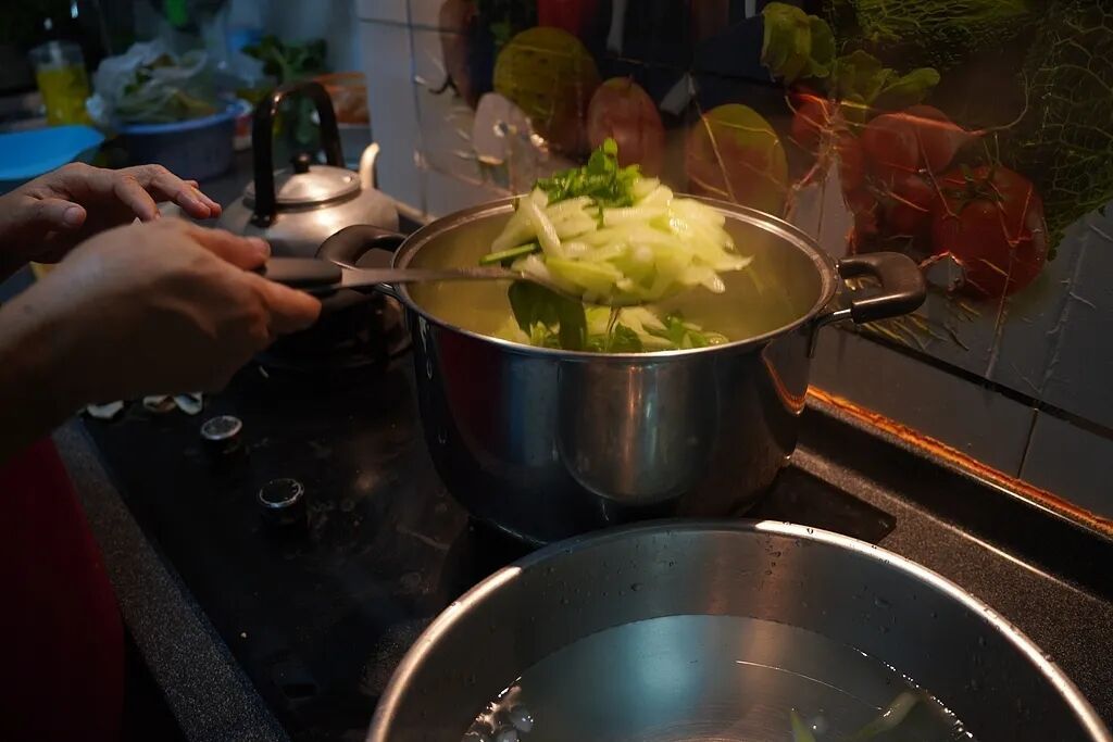 若一锅水焯不同食材,应该先焯气味小的,再焯气味大的;先焯浅色的,再焯深色的。