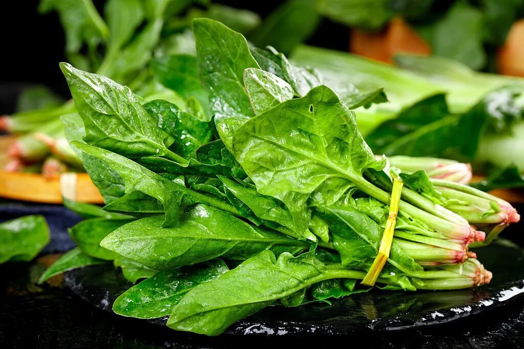 含草酸的菜,比如菠菜空心菜芹菜苋菜马齿苋鲜笋 、茭白苦瓜等。