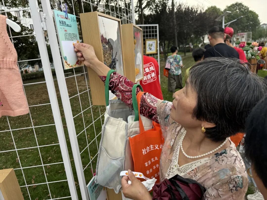 评比现场热闹非凡,摄影作品、书画作品、手工作品等齐聚一堂,每一件都饱含创作者对社区生活的热爱。大众评审们认真品鉴后纷纷拿出点赞票,为“民间艺术家”们投票,不少作品人气不相上下;前来参观的居民也不时驻足赞叹、热烈讨论,让传统文化在现代社区生活中焕发出新的生命力。