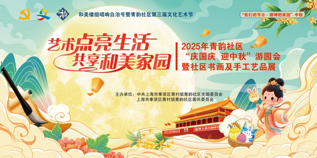 为进一步丰富社区居民文化生活,增强邻里互动与社区凝聚力,在国庆、中秋双节来临之际,昨天(9月28日),青村镇青韵社区依托“和美自治金”举办的第三届文化艺术节正式拉开帷幕。本次艺术节以“艺术点亮生活 共享和美家园”为主题,开展2025年“庆国庆·迎中秋”游园会暨社区书画及手工艺品展,邀请社区居民共享这场“家门口的文化盛宴”。