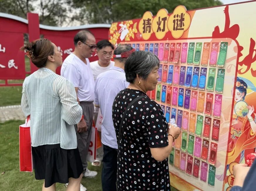 与此同时,游园会区域同样精彩纷呈。共建单位青村联通、青村邮政结合传统节日元素,以铜币兑换游戏的形式营造浓厚佳节氛围,并设计了“邮”寄秋思、“联”盘映月、“谜”月同心、“圈”家乐圆等特色项目,让居民在互动中收获欢乐,留下一段难忘的邻里团聚时光。