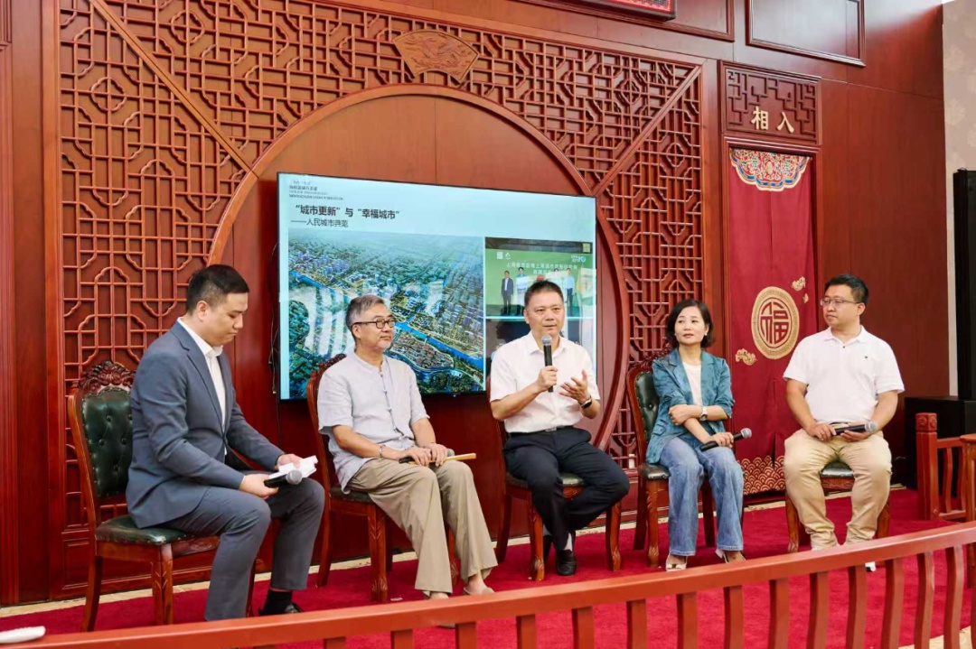 圆桌对谈环节,上海奉贤发展(集团)有限公司党委书记、董事长朱文忠作为城市发展建设者代表参与讨论。他以具体案例为切入点,阐述了如何通过“城市功能焕新、空间缝合与文脉延续”组合拳,打造“15分钟社区生活圈”,实现老城复兴与民生改善之间的有效平衡。“最美阅读空间”偒傣书房负责人张海涛则以方言文化推广为例,表达了公共文化阅读空间在城市更新中的责任与担当:“书房取名‘偒傣’,意为奉贤本地吴语‘这里’,我们通过方言读物、本土文献展陈,让市民在阅读中找回归属感。”