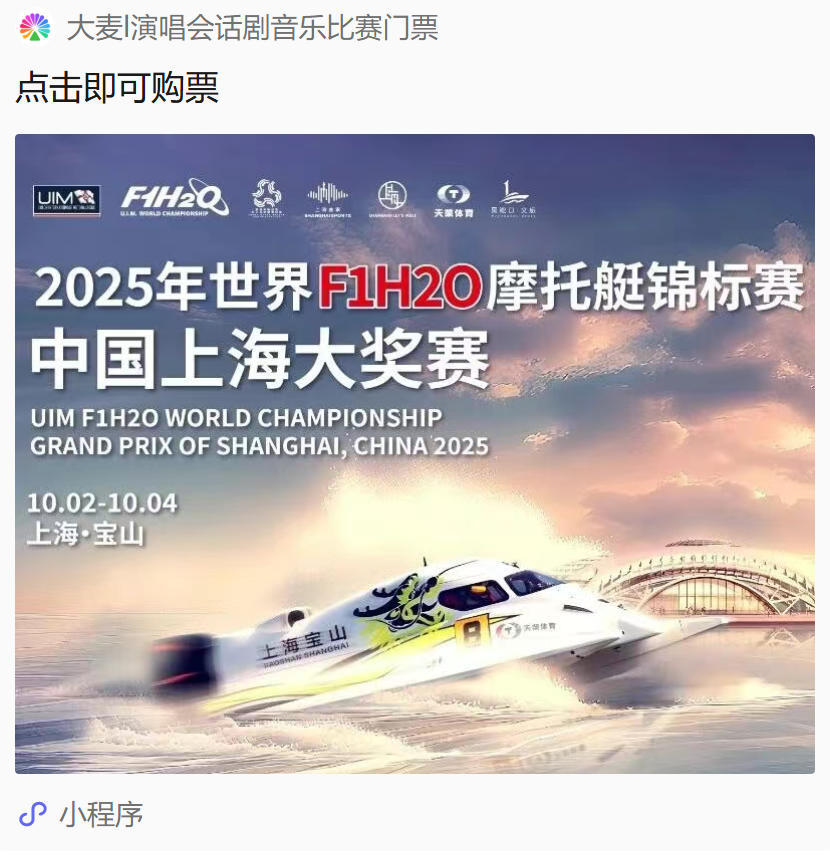 购票方式:进入大麦网进行购票,或直接点击下方小程序进行购票
