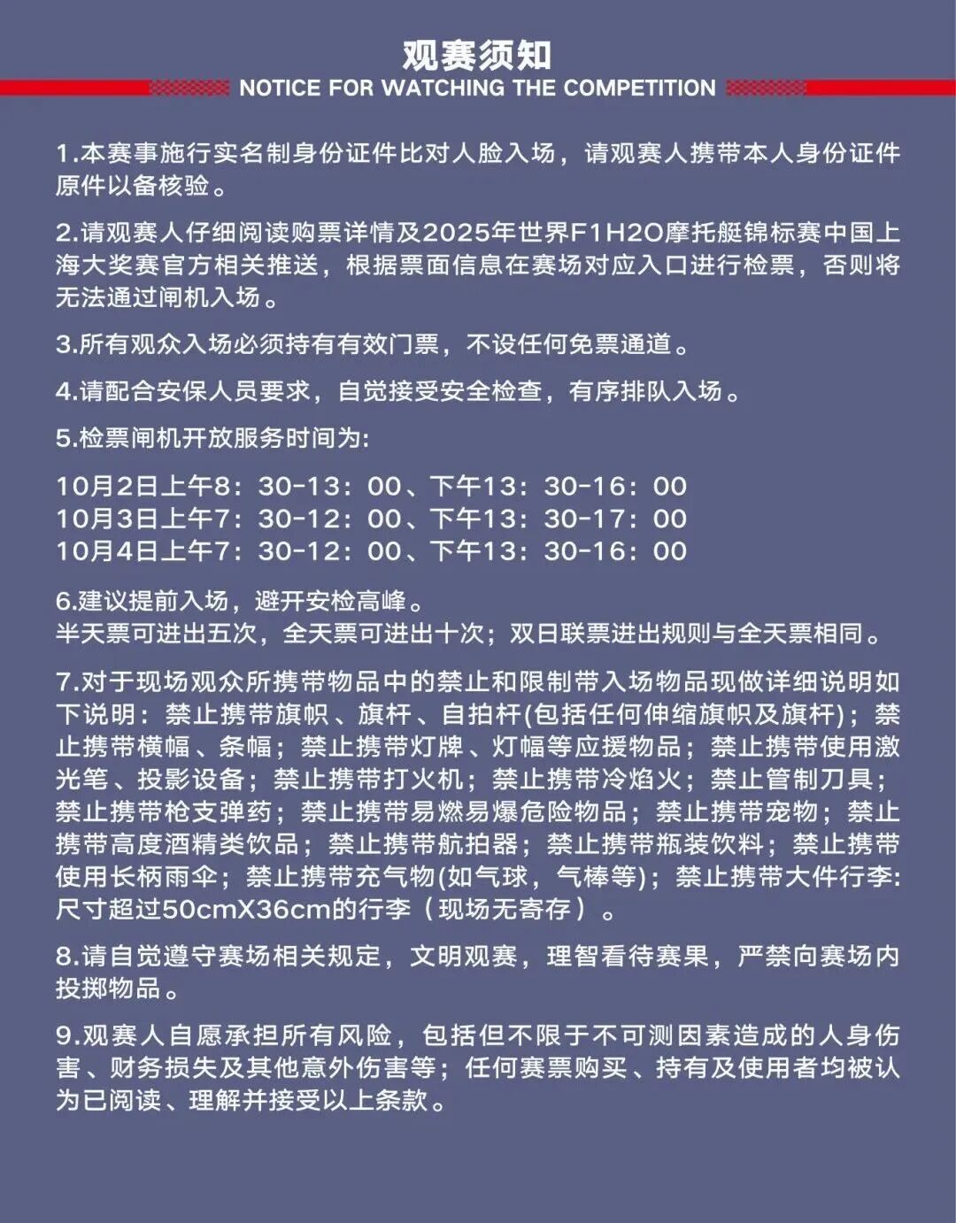 2025年世界F1H2O摩托艇锦标赛中国上海大奖赛将于10月2日至10月4日热力开赛!本次赛事选址于长滩内档水域,该区域对比去年赛事区域水文条件更加优越,更符合国际顶级摩托艇赛事的专业要求,能够确保参赛选手技术发挥。 引擎轰鸣、速度飙升、冲破束缚,想要现场目睹这场国际顶级的水上运动赛事,这份观赛指南必须码住!赛队情况、赛事日程、比赛看点、交通指南......一篇给你讲全!