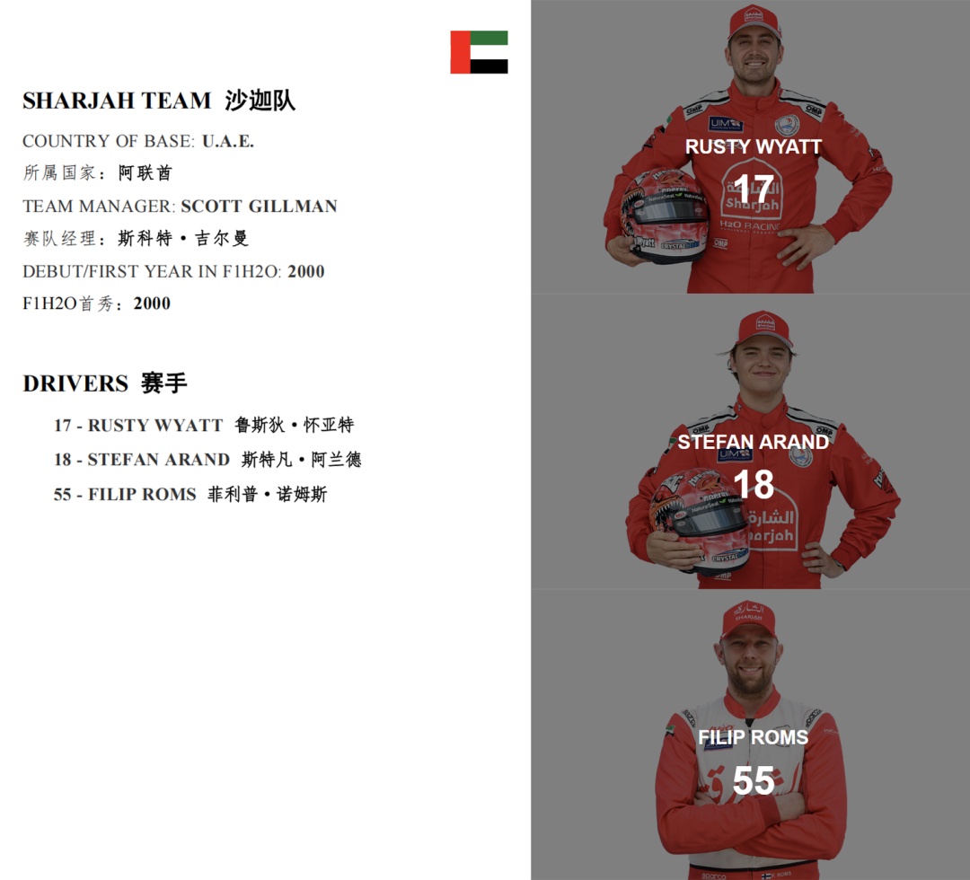 2014-2016赛季三连冠得主——中国天荣F1H2O摩托艇队强势回归主场!主力赛手彼得·莫林向领奖台发起强有力的冲击!经验丰富的凯尔·马斯科尔将首次代表中国天荣F1H2O摩托艇队亮相,表现值得期待。