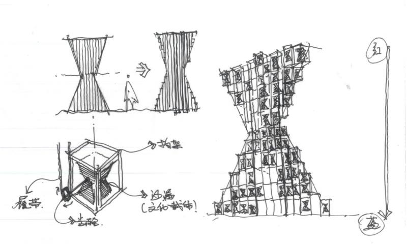 当说起“土生土长”这个命题,陈伟第一时间想到自己从业18年的上海。他希望以时间为视角,来展现城市的更新发展、生态脉络的生长、人文精神的传承……他赋予时间可见的形态:用沙漏流动直观呈现时间流逝,用旋转互动象征城市动态发展与生态循环,由此形成“时间森林·森林时间”这组作品。