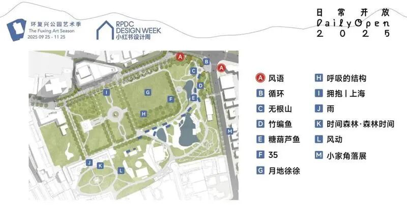 除了这三组作品,复兴公园和思南公馆区域还有“循环”“月地徐徐”“风语”等青年设计师匠心打造的10余组“土生土长”艺术作品;另有小红书生活画展等艺术展览、思南月圆生活节等精彩纷呈的活动,期待市民来环复兴公园区域打卡参与!