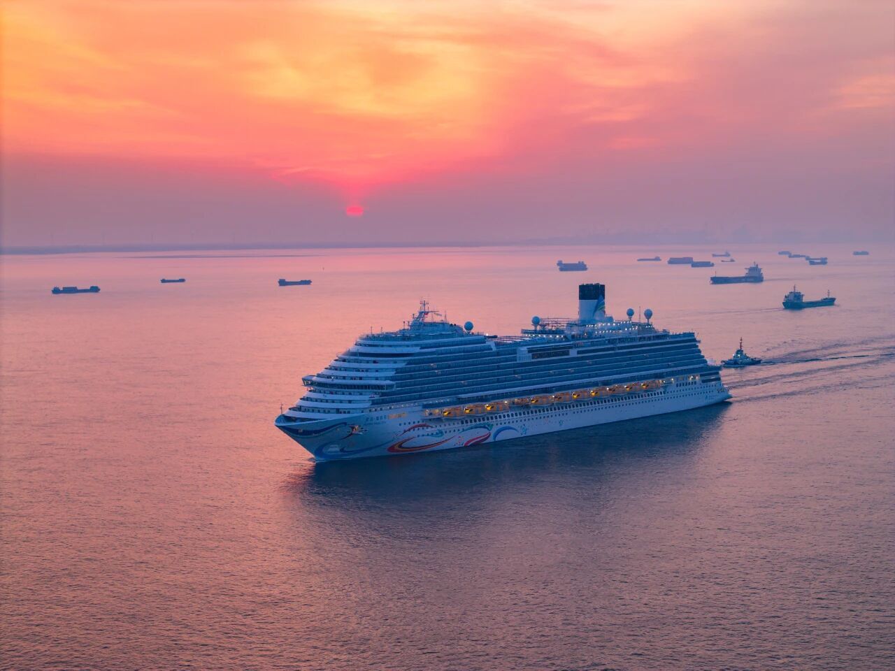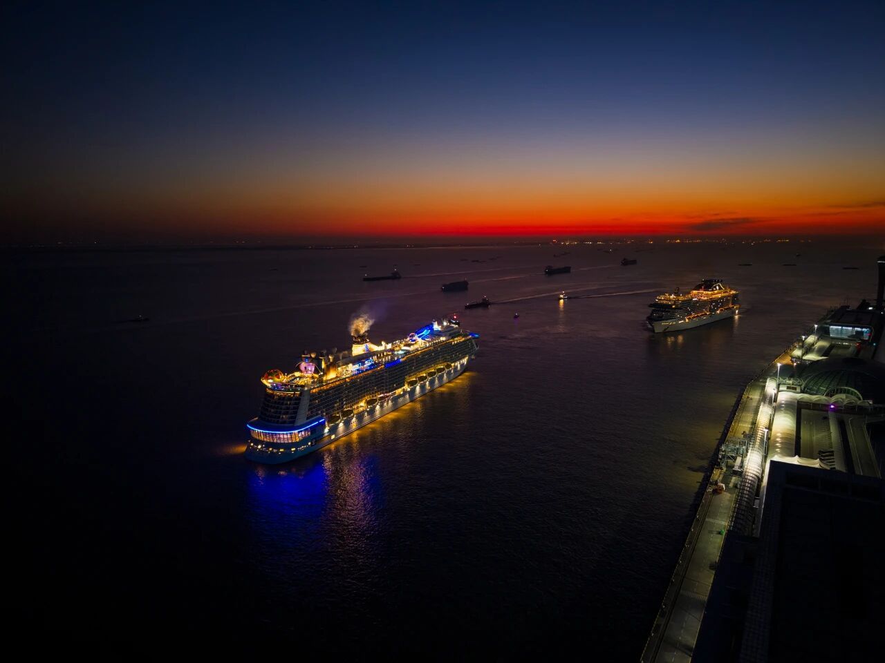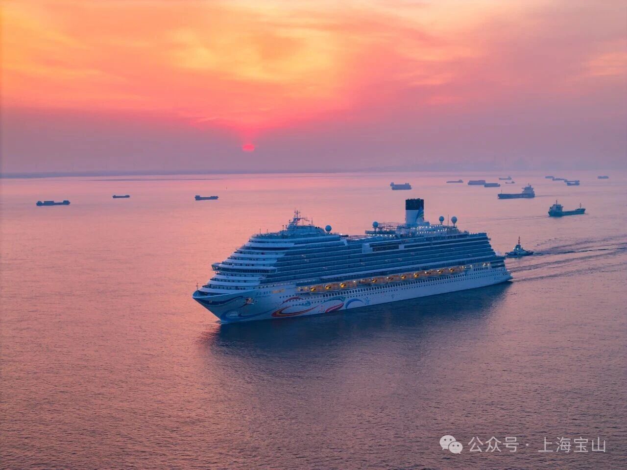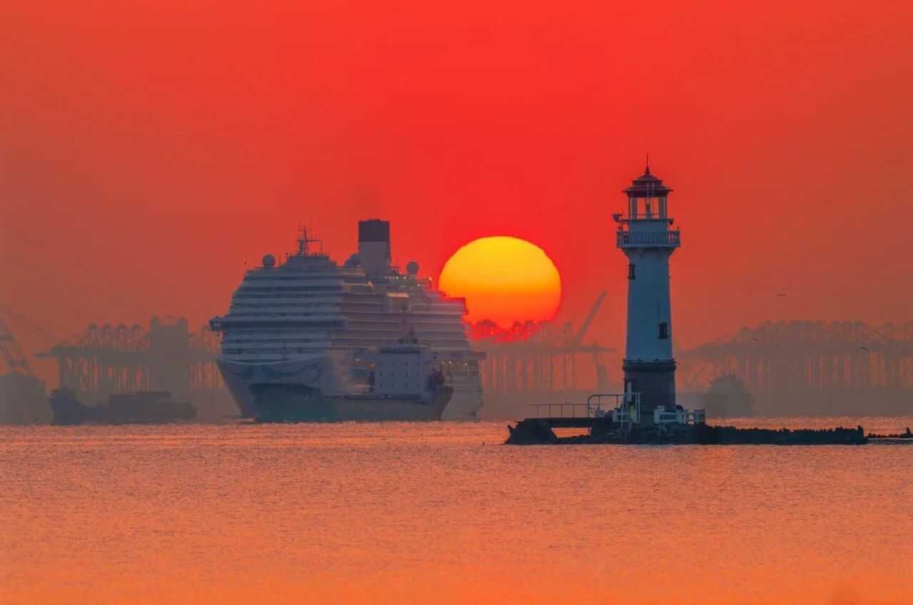 还能偶遇“爱达·魔都号”与“海洋光谱”号大邮轮披着霞光缓缓进港