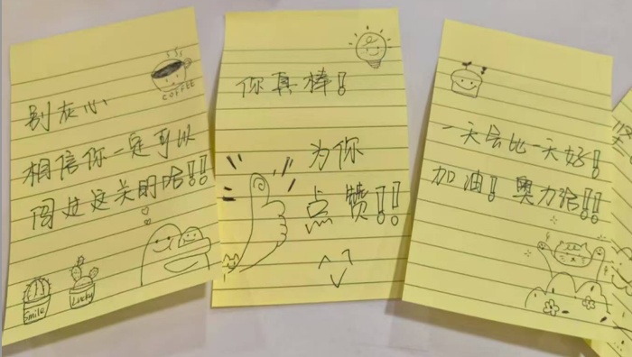 身体的照护是基础,心灵的共鸣才是支撑他穿越黑暗的灯塔。他无法言说,我便努力成为他“沉默叙事”的翻译者:一个烦躁的翻身,可能是难以忍受的体位不适;一个失焦的眼神,或许正被绝望的潮水淹没;一次痛苦的皱眉,定是疼痛的尖峰时刻……每当捕捉到这些“信号”,我会主动靠近,握住他骨节分明的手,轻声询问:“小鑫,是漱口的时间到了让你紧张吗?是止痛药没压住疼?还是躺久了想换个姿势?”当我留意到他情绪低落时,会特意写一张小小的便利贴,留一句鼓励的话,希望这点滴的关心,能为他带去一丝温暖和力量,让他知道我们一直都在!我还会向他讲述其他病友的“康复故事”,那些在黑暗中摸索最终迎来曙光的故事,希望能为他心中那将熄的希望之火添一根柴。并且,为了帮小鑫树立康复信心,我特意邀请了一位恢复良好、返院复查的康复病友。在征得双方同意后,为他们安排了一次轻松的面对面交流。这位康复前辈非常热心地分享了自己治疗和康复的亲身经历与成功经验,这种“同伴支持”极大地鼓舞了小鑫,有效缓解了他的焦虑,增强了他积极治疗的勇气和决心。当他的家人被焦虑淹没,倾诉恐惧时,我耐心倾听,接纳他们的绝望,也坚定地传递信念:“会好起来的,给他时间,也给我们时间,我们一起书写转机。”我深知,绝望的内心比溃疡更能吞噬生机。