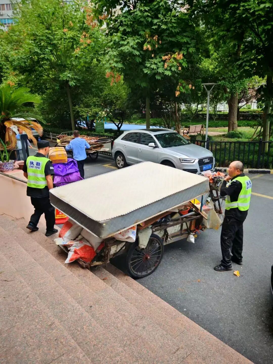 为了让处置更智能、更规范,街道还主动对接了区绿化市容局推出的“无废管家”服务模式,借助“运清爽”小程序,居民只要线上预约,就能看到明确的收费标准,后续的清运环节也形成了闭环。从预约到上门,再到最终处置,每一步都清晰可查。据统计,仅宜山路701弄小区,近几个月就成功处置了10至15个床垫、6至8套沙发、约10个马桶,还拆解了800公斤木材。曾经堆积的“废品”被清走,小区环境清爽了不少,居民们纷纷点赞。而在尚汇豪庭小区,物业近期也协助居民处理马桶、浴缸、沙发、床垫、衣柜等大件物品共计三十余件,装满了整整两卡车。