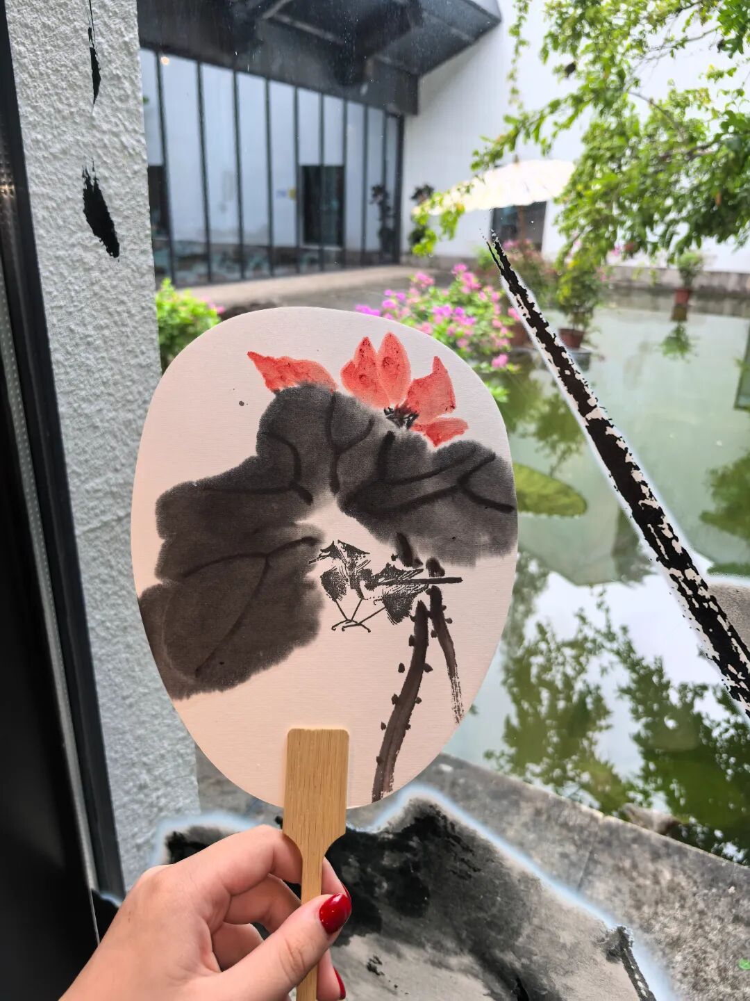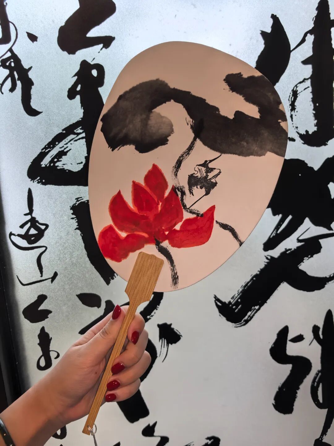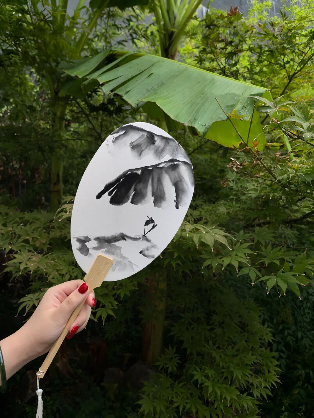 国家一级美术师、香港美协会员、成都博物馆特聘书画家张寅斌,百乐雅集成员、大连印社社员姚海鹰现场作画,并指导观众共同完成团扇作品。