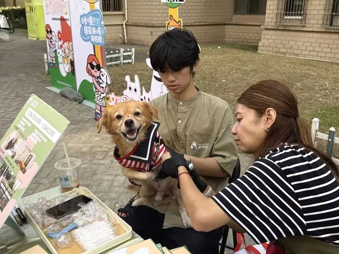 “您家狗狗指甲有点长,这样剪不容易伤血管……”在 “爱宠健康站”义诊区,宠物医生一边为“毛孩子”修剪指甲,一边向主人传授护理技巧;义诊台前,医生们为“毛孩子”们进行了细致的体检,同时向居民们普及科学喂养知识,强调日常驱虫、疫苗接种的重要时间节点,传授宠物行为训练的小技巧,推动“文明养宠,责任护宠”的理念深入社区每一个养宠家庭。