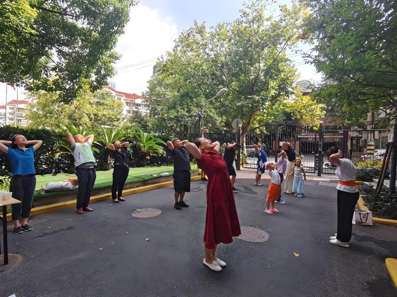 而另一侧,上海传承导引医学研究所相关工作人员也来到中华苑开展中医导引传习课程,用传统导引术解锁科学减重新方式。老师一边示范,一边耐心纠正大家的姿势偏差,手把手指导练习,为公租房里年轻人讲述中医导引术调节气血、促进代谢的原理。