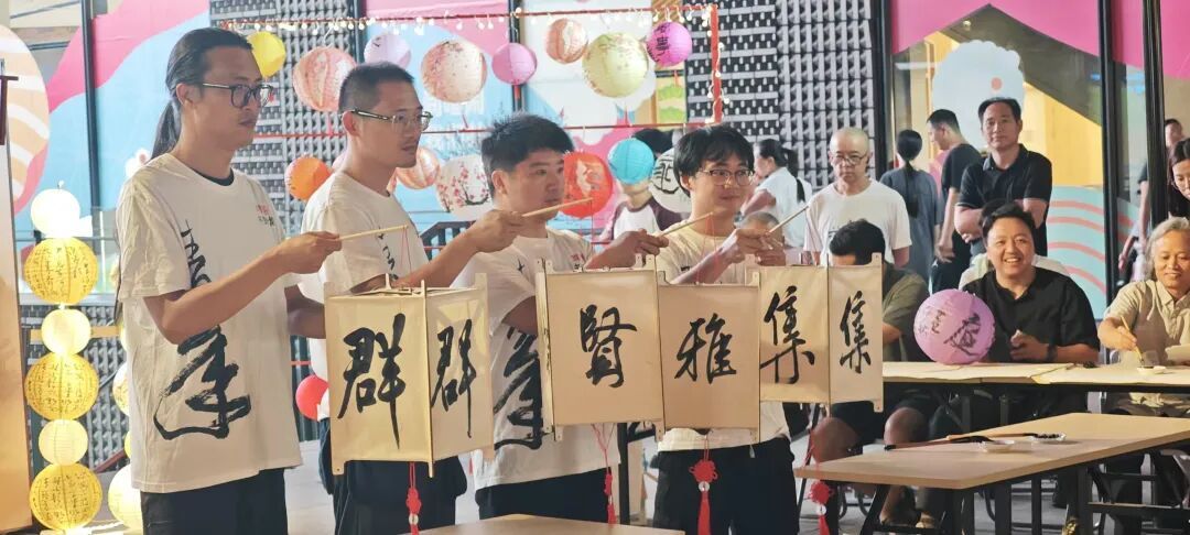 沙龙成员们以中秋为主题在灯笼上进行创作,并邀请了区文化馆、区文联相关嘉宾举行了点灯仪式,一场浸润着书法风骨与中秋情思的雅集,就此徐徐展开。