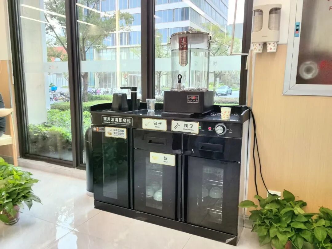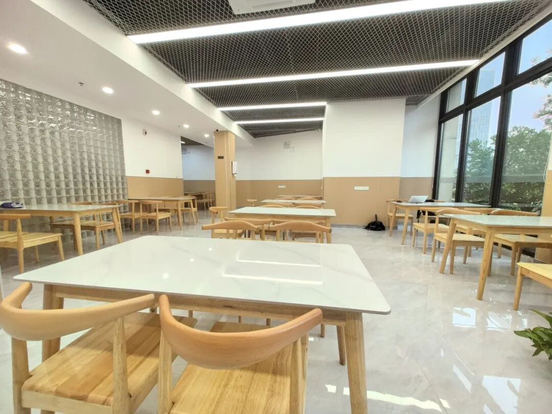 “悦享”食堂就餐区面积近300平方米,可容纳百余人同时用餐。食堂采用简约的装修风格,搭配原木色的桌椅,整体环境宽敞明亮、温馨舒适。