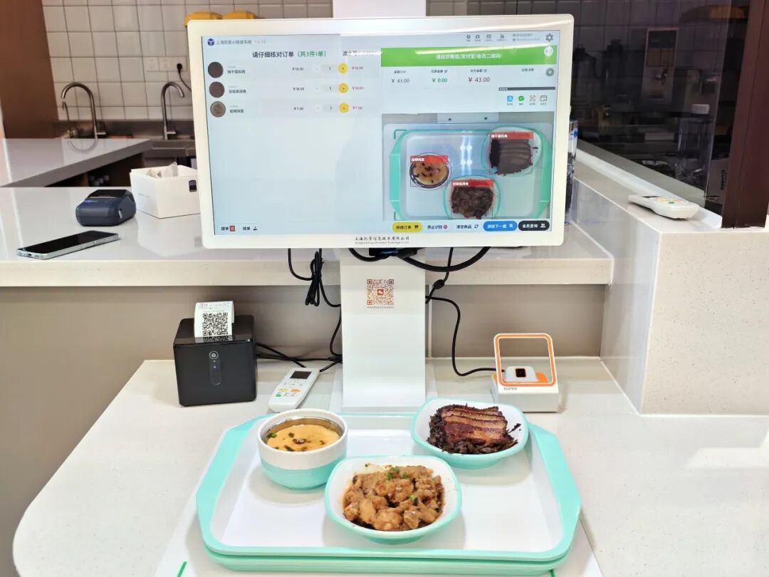 为了提高用餐效率和服务质量,“悦享”食堂引入了先进的智慧结算设备。居民自主选餐后,将餐盘置于结算台,系统便会迅速运用智能识别技术,精准识别餐品并自动计价。整个过程高效流畅,大大节省了时间,让居民享受美食之余还能感受到科技带来的高效与便捷。