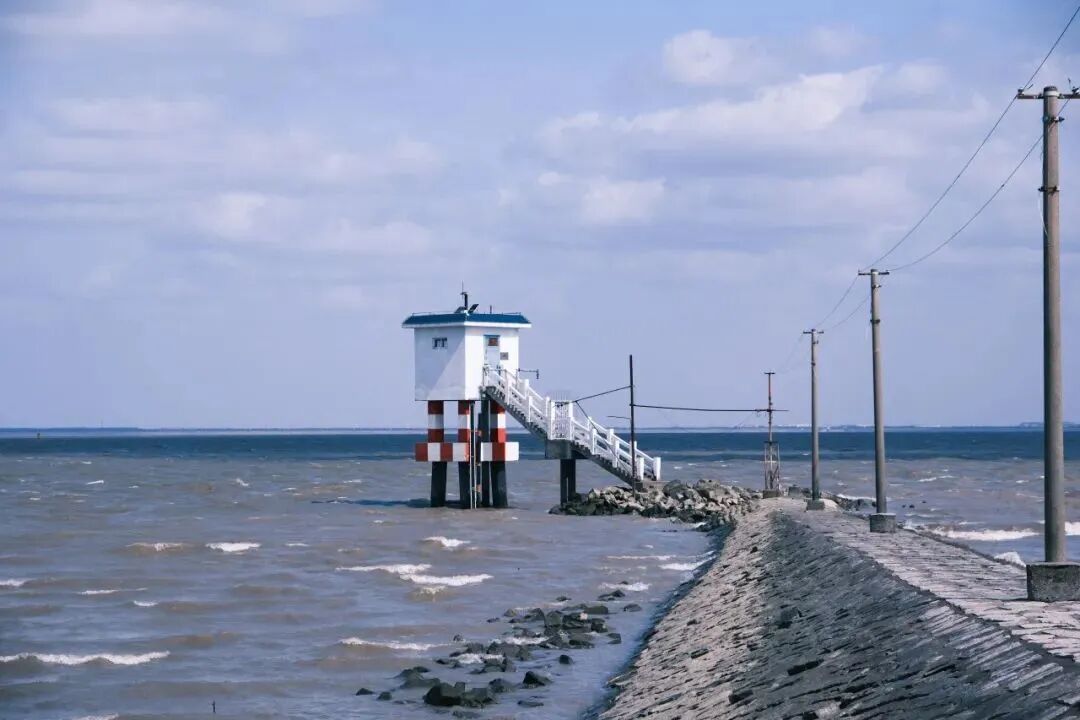 横沙小白塔,实际上是岛上的水文站,它的主要任务是观测及搜集河流、湖泊、水库等水体的水文、气象资料。小白塔的建筑风格简约而独特,白色的外墙在蓝天白云和绿色植被的映衬下显得格外醒目。沿着斑驳的石阶径直而上,可以眺望到远方的美景。芦苇荡成为了飞鸟栖息的天然避风港,阳光洒在无边无际的江水上,泛起波光粼粼的色彩。这些自然元素与小白塔共同组成了一幅静默而美丽的画卷,让人流连忘返,成为了游客们拍照留念的绝佳地点。