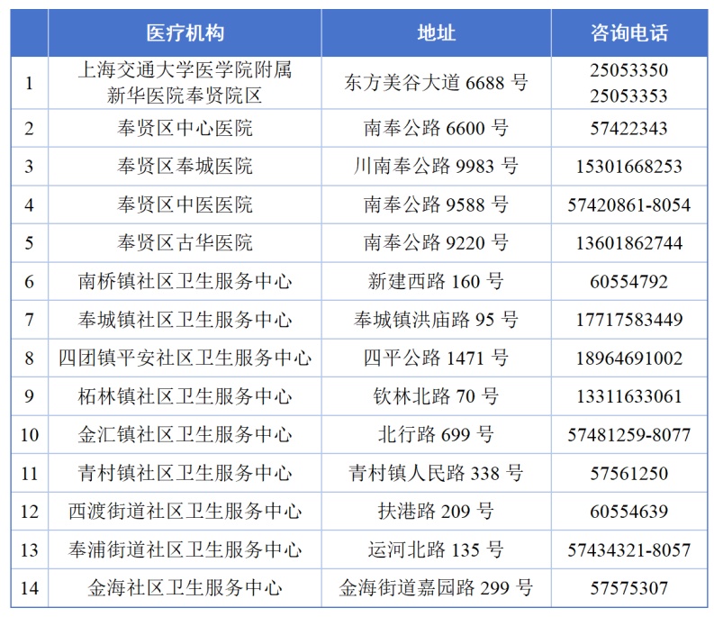 奉贤区RSV检测医疗机构名单