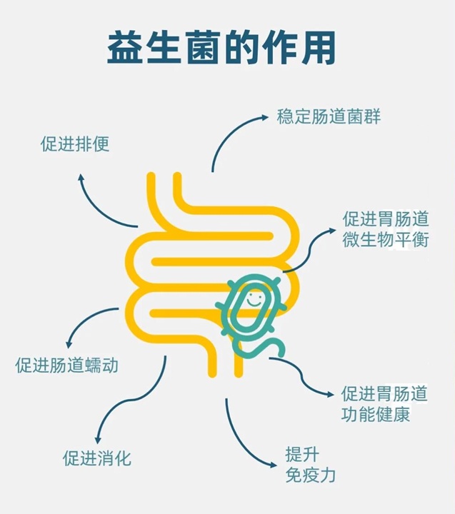 益生菌通过增强有益细菌的数量或活动影响肠道细菌。这可能导致潜在致病微生物数量减少或减少宿主微生物群的潜在有害代谢活动。益生菌还可能影响免疫功能。
