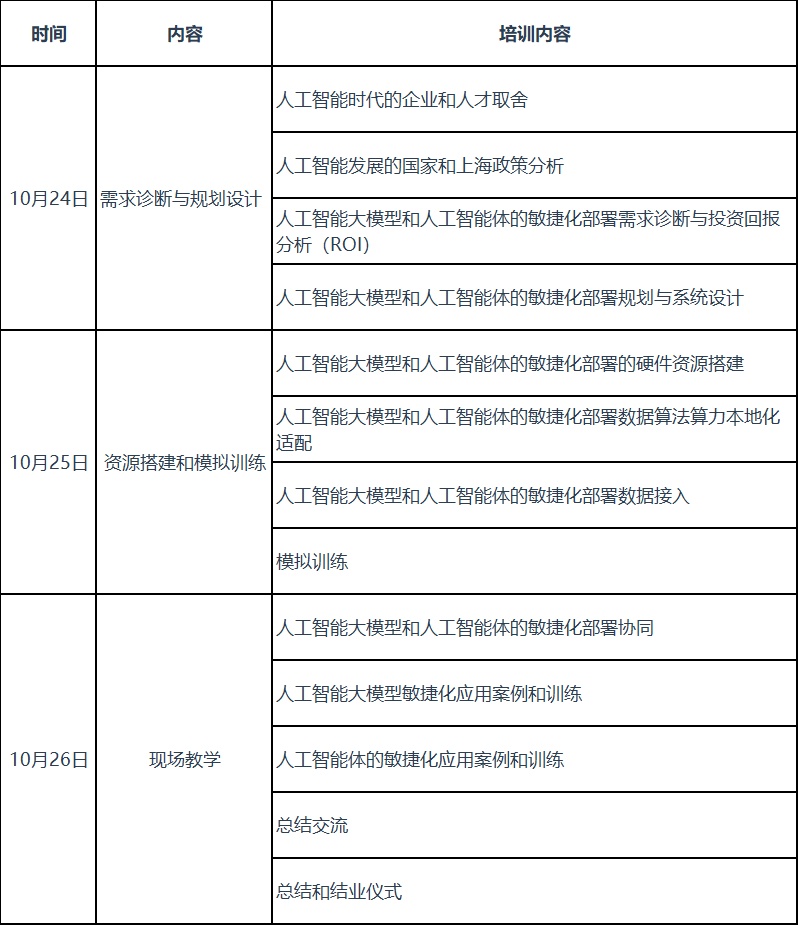 根据《上海市人力资源和社会保障局关于上海市专业技术人才知识更新工程 2025 年度高级研修项目(急需紧缺人才培养项目) 计划的通知》(沪人社专〔2025〕161号),为培养人工智能技术与产业应用深度融合的复合型人才,形成人工智能体专家库,通过系统化研修与实践训练,使学员掌握人工智能大模型/人工智能体敏捷化部署从需求诊断到场景识别,从科学规划到资源匹配,从系统构建到工程实施,从模型训练到产业优化的全流程能力,“人工智能大模型赋能新型工业敏捷化部署应用”列入本年度高级研修项目,由上海市产业科技金融协会承办。现将有关事项通知如下:
