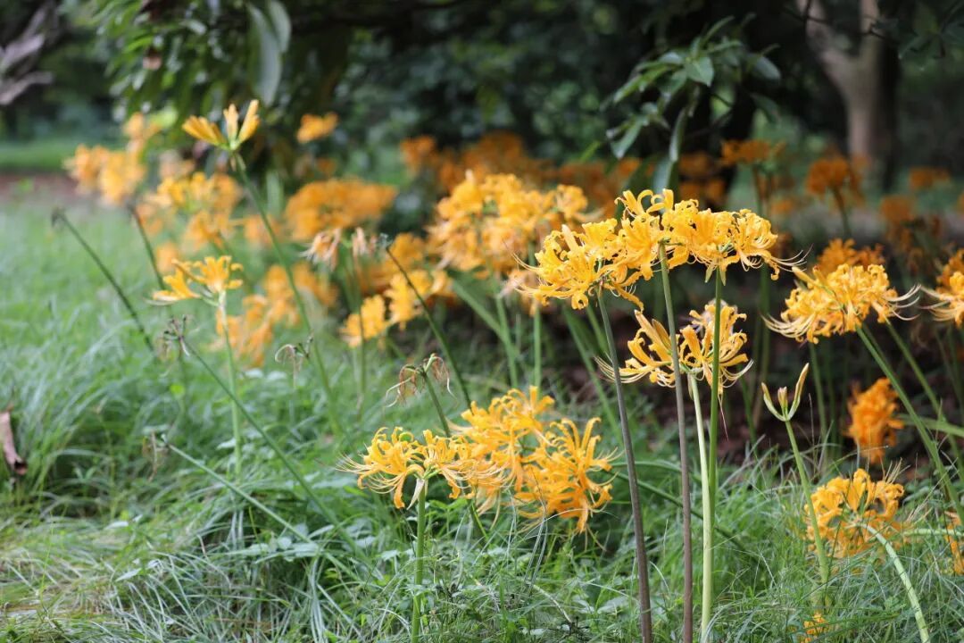 ②高观赏价值,适配景观需求。石蒜花型独特(花茎挺拔、花瓣舒展如丝)、色彩浓烈(常见鲜红、纯白、金黄等),夏末秋初开花时能形成极具视觉冲击力的景观,可填补这一季节的花卉空缺,是优质的景观花卉品种。