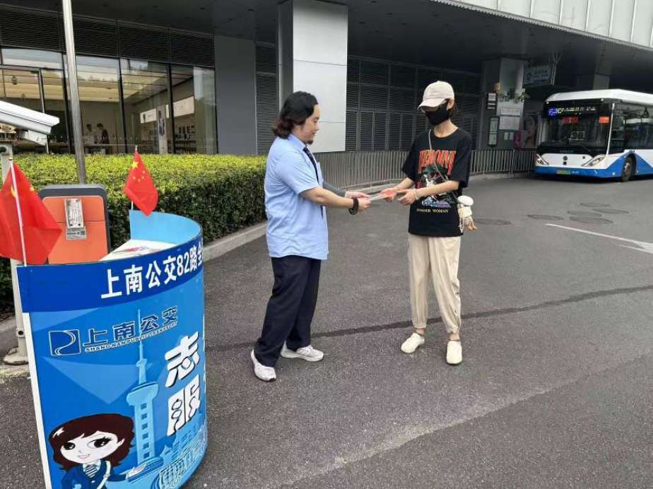 志愿者们不仅维护现场乘车秩序,还热情地为乘客答疑解惑。发放的便民服务卡上,详细标注了 82 路沿线的东方明珠、中国馆、太古里等浦东地标性建筑,为八方乘客提供线路指引和景点介绍。