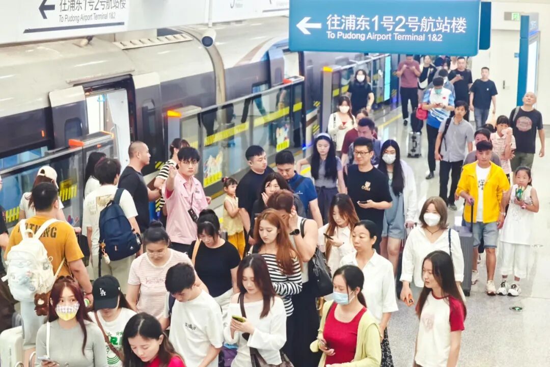 长假期间,上海轨道交通日均客流达707.96万人次。其中,10月8日市域机场线单日客流攀升至6.81 万人次,创线路开通以来新高。面对长假期间探亲流、旅游流、学生流的叠加客流高峰,申通地铁集团制定多项精准保障措施:运力配置上,9月30日至10月4日1、7、8、9、10、13号线实施延时运营,10月5日至8日1、2、9、10、17号线加开夜间定点加班车,铁路及航空枢纽地铁站加班车进一步延长;客流管控方面,2、10号线南京东路站及14号线豫园站临时封站,交通枢纽、商圈景点周边重点车站限流分流,涉大型活动站点完善“一站一预案”;服务保障上,各大枢纽站与铁路、民航联动互通客流信息,重点车站增派人员及志愿者提供引导帮扶、爱心接力等便民服务;设备维护上,维保团队依托数字化平台,对全网列车、供电、信号等核心设备开展 “地毯式” 预检,在虹桥枢纽、南京东路等20余个重点站点增派值守力量,确保保障措施精准覆盖。“中国红”点亮各车站,站内悬挂的国旗、南京东路站等车站打造的节日主题公共文化展览,让乘客在出行中感受浓厚节日氛围。