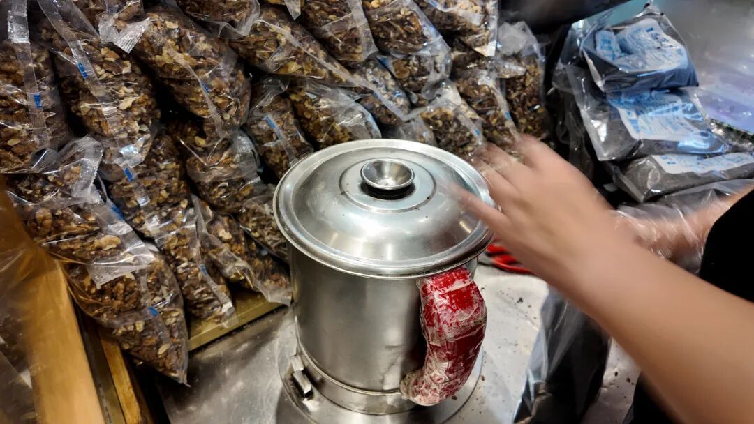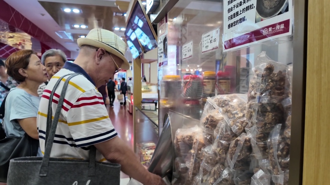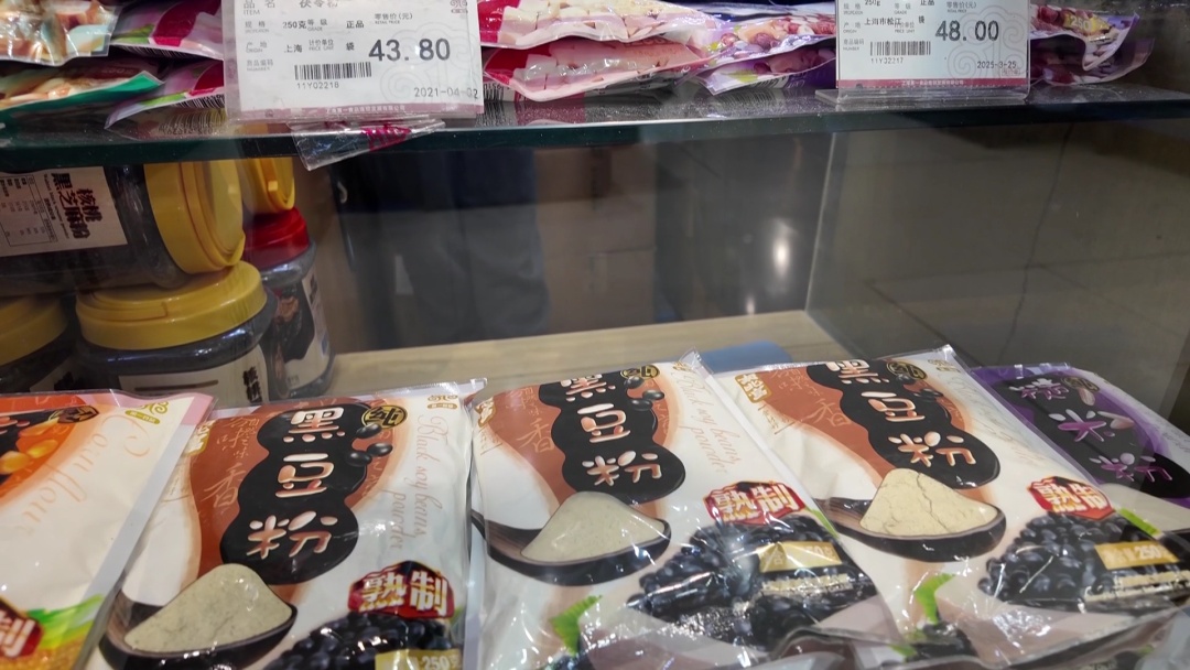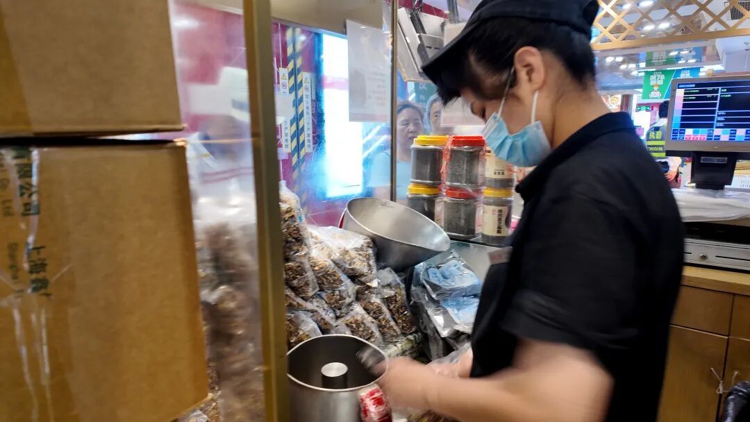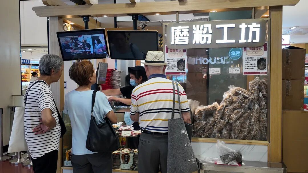 走进店内二楼,远远便能听到机器打磨食材发出的隆隆声响。芝麻核桃粉柜台前,早已围满了前来选购的市民,人群中既有常年光顾、经验丰富的老年人,也有为家人精心准备食补食材的年轻人。