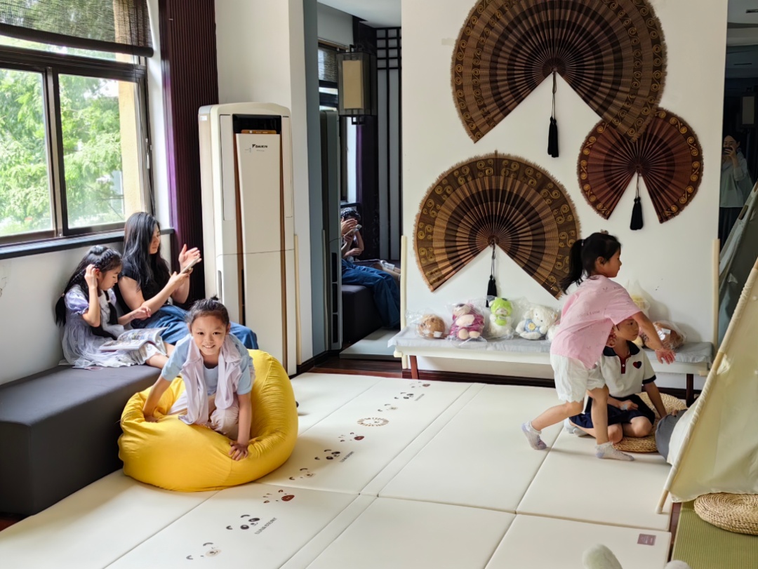其中,“国子课堂”邀请专业老师授课,带领孩子学习书法、国画、古诗合唱,沉浸式感受传统艺术魅力;针对低龄儿童,“绘本故事分享”“用英语讲成语故事”等活动,将表达能力训练与文化传承巧妙结合,让孩子在趣味互动中了解传统文化;暑期开设的少儿古琴班,更是将“添睦国学”特色的民乐课程送到青少年身边,助力传统文化薪火相传。