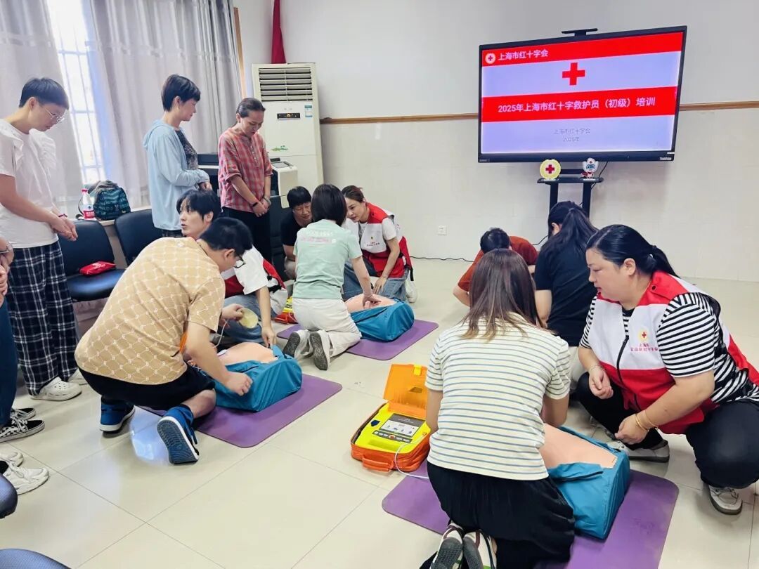 AED安装到位,急救培训也同步跟上。近期,罗店镇红十字会服务中心开展了一场场应急救护培训,参与者有居委干部、物业保安、商场员工、运动场工作人员和社区志愿者等。