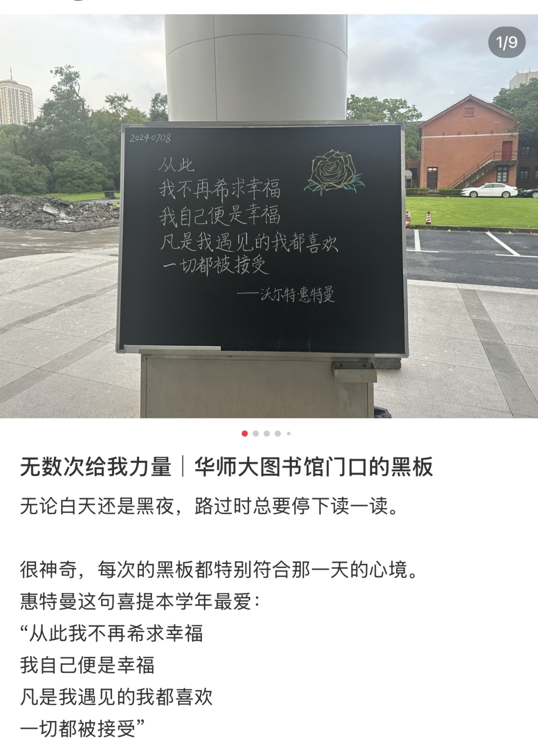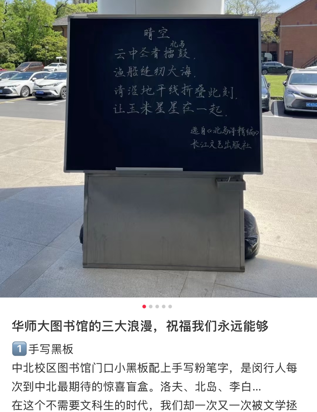 这块伫立在图书馆门前的小黑板,早已超越了其物理形态。它记得你晨读时的哈欠,听懂你夜归时的叹息。