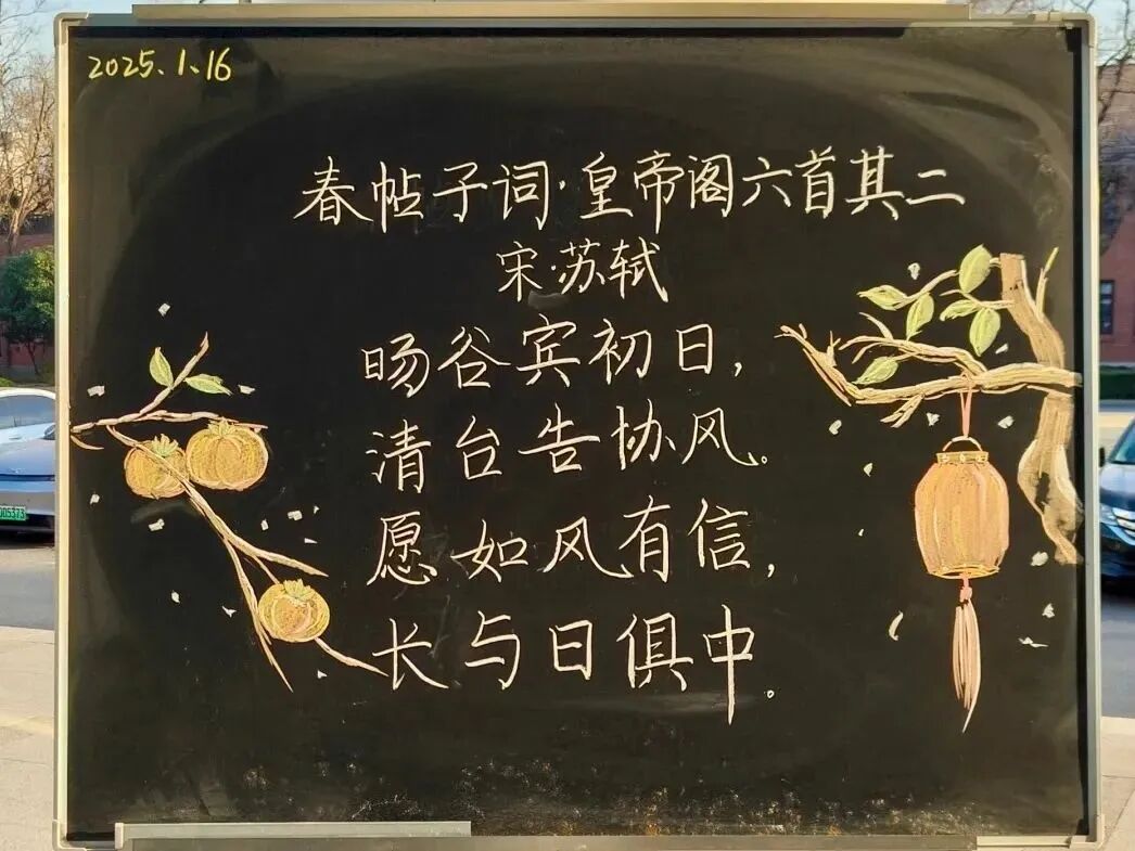 文字虽无声,却充满力量。不论是在开学期末、季节更替或传统佳节等时间节点,还是在情绪的低谷时,师生都可以在小黑板上得到心灵的慰藉,这让小黑板被学生们亲切地称为“心灵盲盒”。
