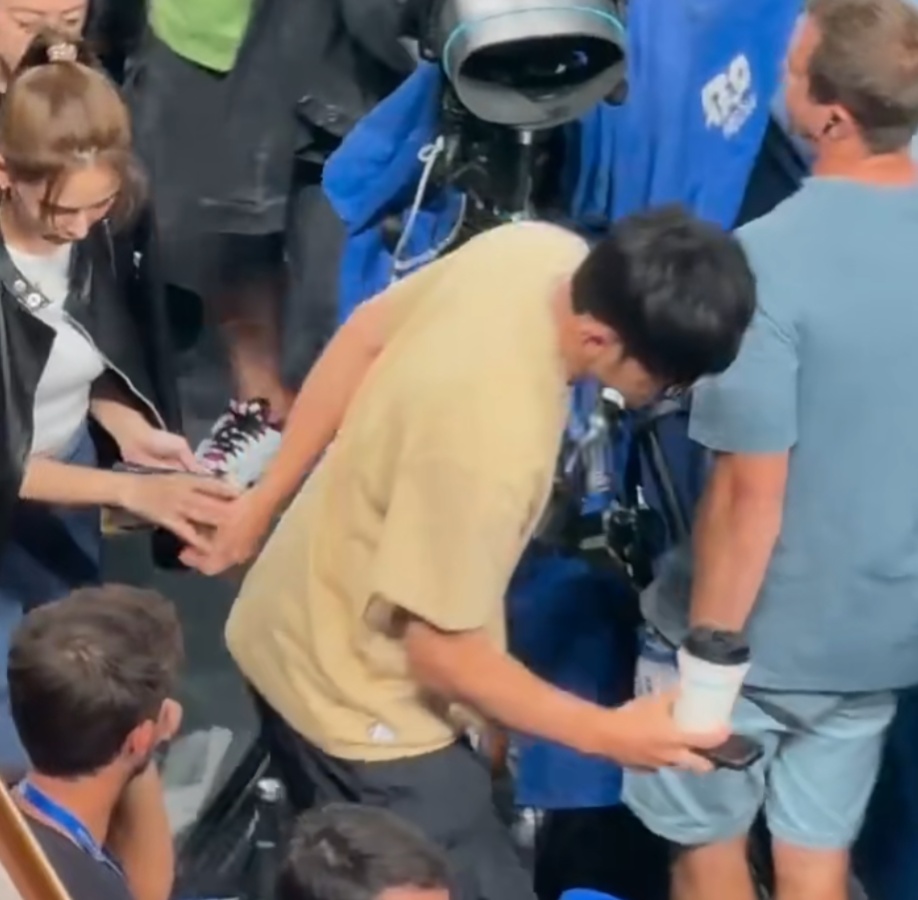 10月8日,有多名网友发布视频称,在上海网球大师赛偶遇周杰伦,46岁周杰伦携妻子昆凌现身赛场。