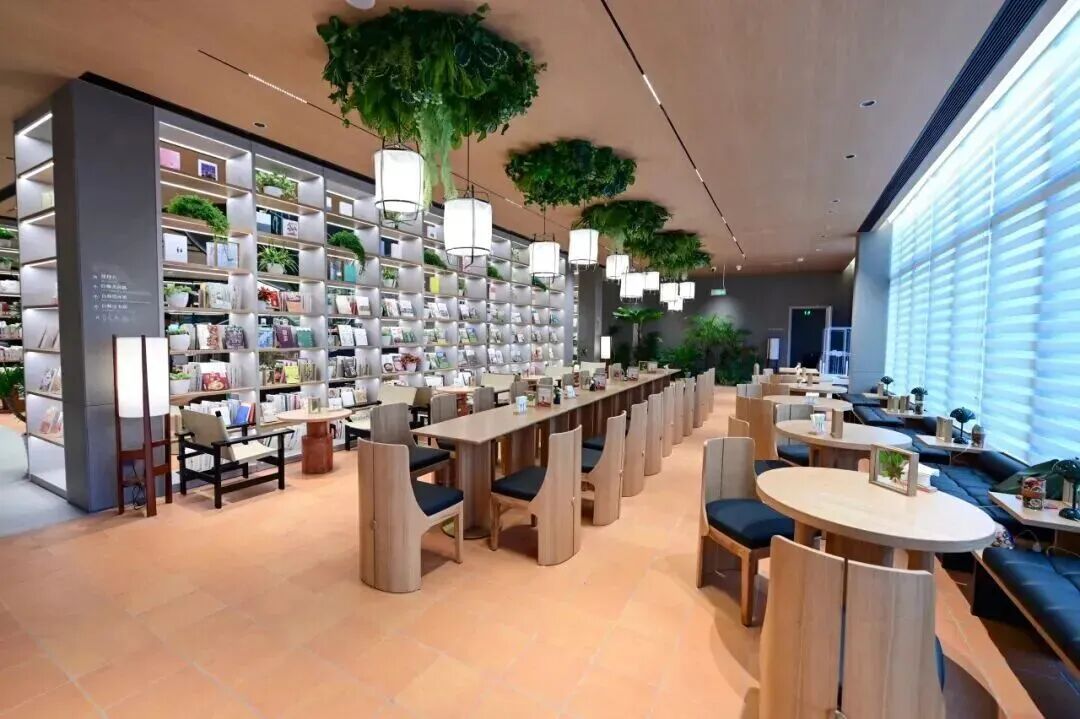 馆内设计简约雅致,大大的落地窗外是公园的美丽景色。一楼的主题餐厅提供各式特色饮品,无论是经典的拿铁咖啡,还是清新的果汁茶饮,都适合在阅读的间隙慢慢品味。