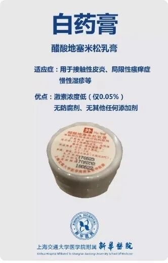 醋酸地塞米松乳膏,即白药膏,要是身上得了接触性皮炎(皮肤过敏后起疹子)、局限性瘙痒症(身上某一块老痒痒)、慢性湿疹(湿疹老不好,一直反反复复的),用它就对啦。