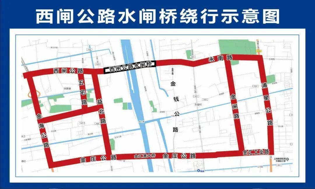 2.金海公路、五宅路、益北路、西闸公路方向的来车,可选择金庄公路-金汇港大桥-金汇工业路等路段绕行。