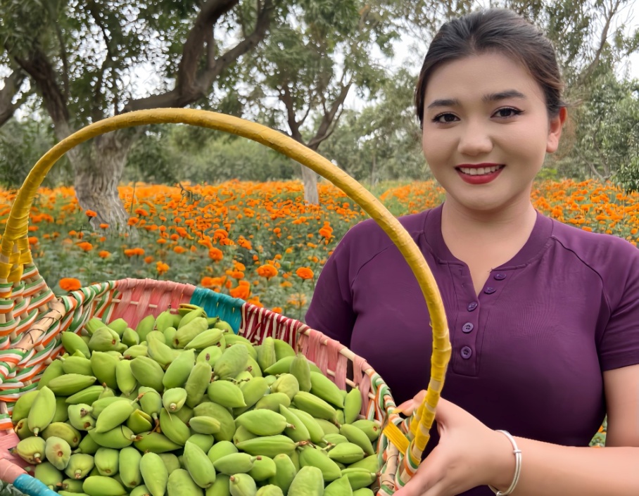每当春暖花开季节,阿热勒乡成片的巴旦木林会绽放出淡粉色的花朵,犹如为大地披上一层柔纱。微风拂过,花香沁人。每当此时,巴旦木花节便如期举办,观光林业、夜间经济、产学研基地和体验式消费项目(如手工冰淇淋、巧克力制作),吸引游客前来,创造出更多就业岗位和收入增长点,实现“农业+”的多重效益。