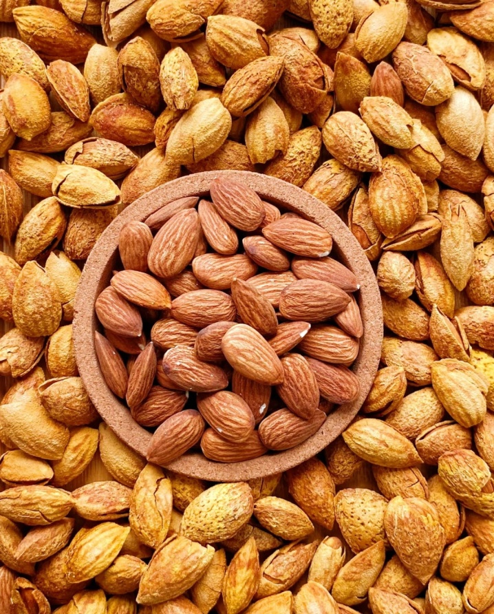新疆姑娘采摘的新鲜巴旦木