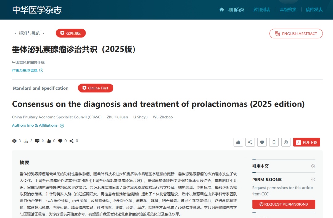 《垂体泌乳素腺瘤诊治共识(2025版)》