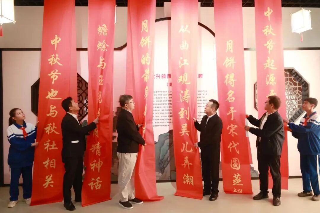 展览采取“1+4”布局,精准设计、全域推进:主展区设于喀什地区昆仑文化科教基地三楼临展厅,江南风韵精美展墙与中秋元素置景共绘月明风清之境,让古城喀什与江南水乡于此美妙相逢;莎车县乌达力克镇·和集分展区创新打造“中秋长廊”,将纳凉休憩之地化为文化展陈区域;泽普县第八中学崇仁楼二楼走廊分展区利用教室走廊空间,定制中秋主题常设展,成为青少年了解传统节日知识的课后学堂;叶城县昆仑国学书院分展区以轻量化展陈形式,打造传统节日文化科普新空间;巴楚县博物馆分展区,打造博物馆里的传统节日文化体验馆,让厚重的历史空间焕发节日的人文温度。