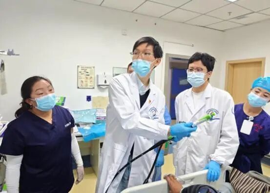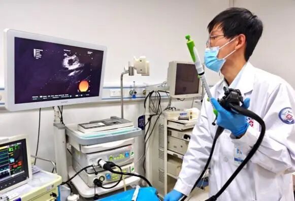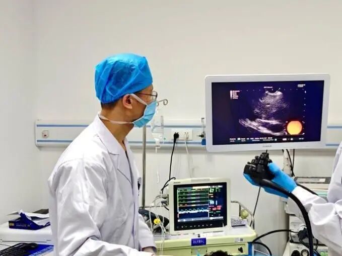 毛益申为患者进行EUS-FNB手术(左)