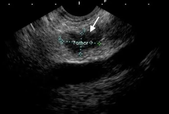 超声内镜下可以清晰地显示患者胰腺肿瘤
