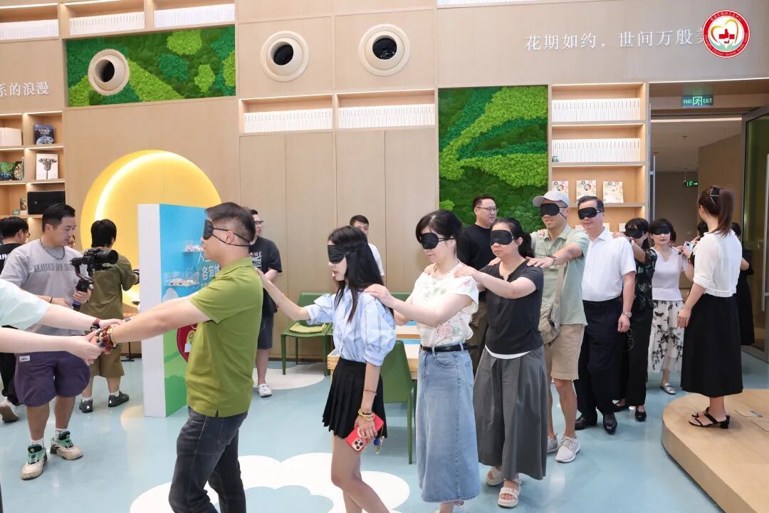活动开场独具匠心,市民们纷纷戴上眼罩,手搭着前一个人的肩膀,在工作人员的悉心引导下缓缓步入活动场地,开启首个体验项目。此时,现场传来轻柔的声音:“你出生了,你的眼前是一片温暖的黑暗,外界的声音模糊而遥远,这是你最原始最安全的状态,本能地,你的双手开始向前探索。”大家以刚刚出生的婴儿视角,凭借触觉去感知这个全新的世界。