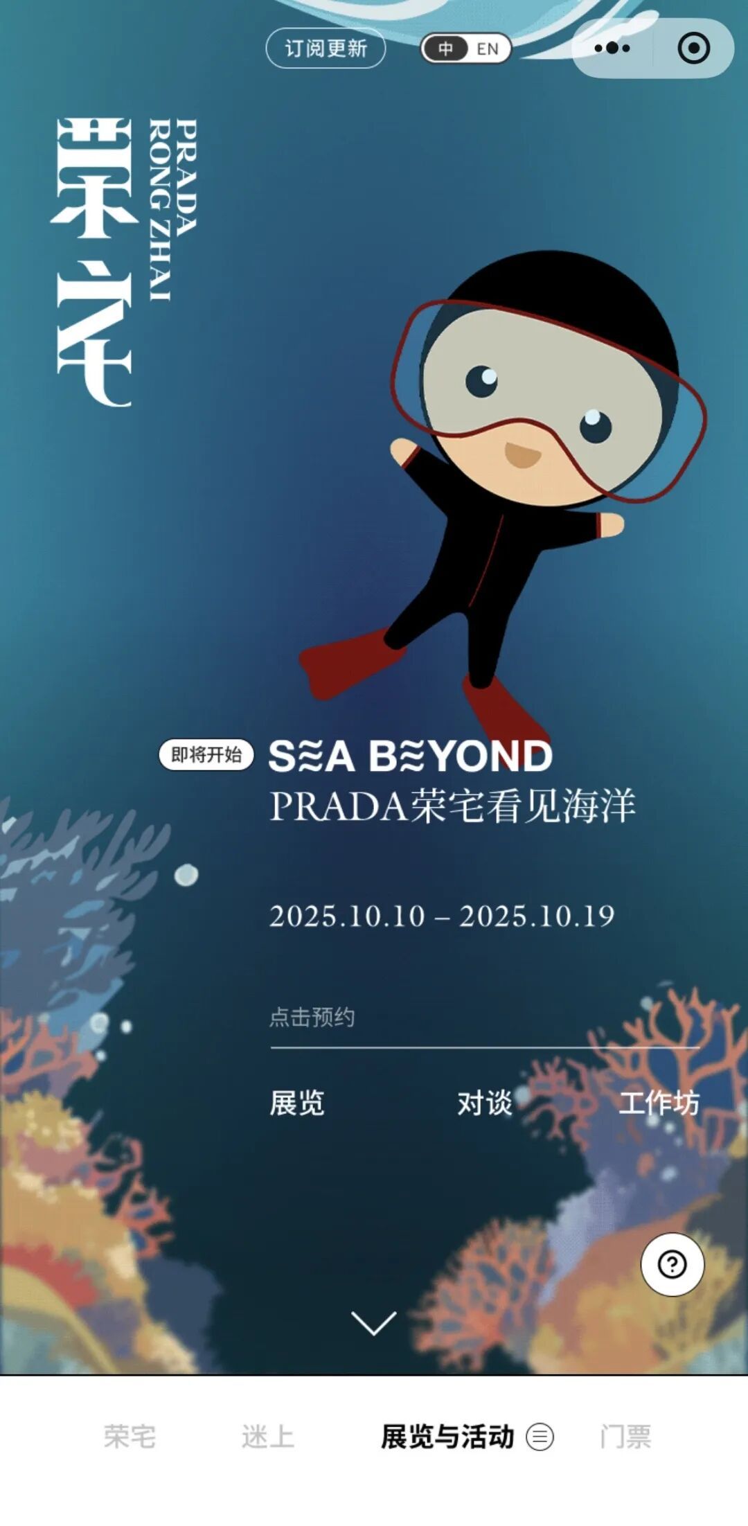 10月10日至19日,位于上海核心地段、建于1918年的历史名邸Prada荣宅首次携手SEA BEYOND项目对外开放,举办一系列面向儿童与成人的多元教育活动,邀约本地群体共同参与海洋保护。观众于此将受邀踏上一场海洋探索之旅,深入了解海洋及其生态系统,以及它所面临的紧迫挑战。