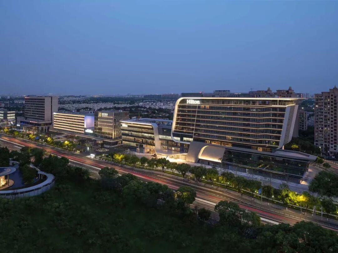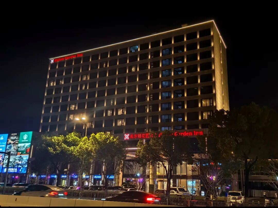 318国道酒店群的夜色格外迷人,酒店的暖黄灯光与周围楼宇的霓虹交织,织就一片流光溢彩的夜间景致。