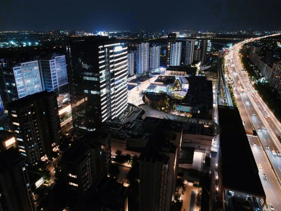 美的全球创新园区这座“森林之上的科技之城”,夜色中展现出现代建筑的炫酷轮廓,在西虹桥区域中独具一格。