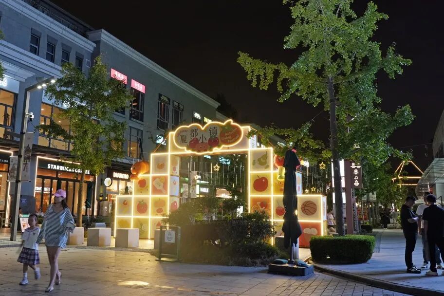 夏都小镇欧式风情街区在夜色中灯火辉煌,游客们漫步其中,享受街头音乐会的动感、环保市集的创意,三五好友月下共享美酒佳肴,体验独属于夏都的浪漫。