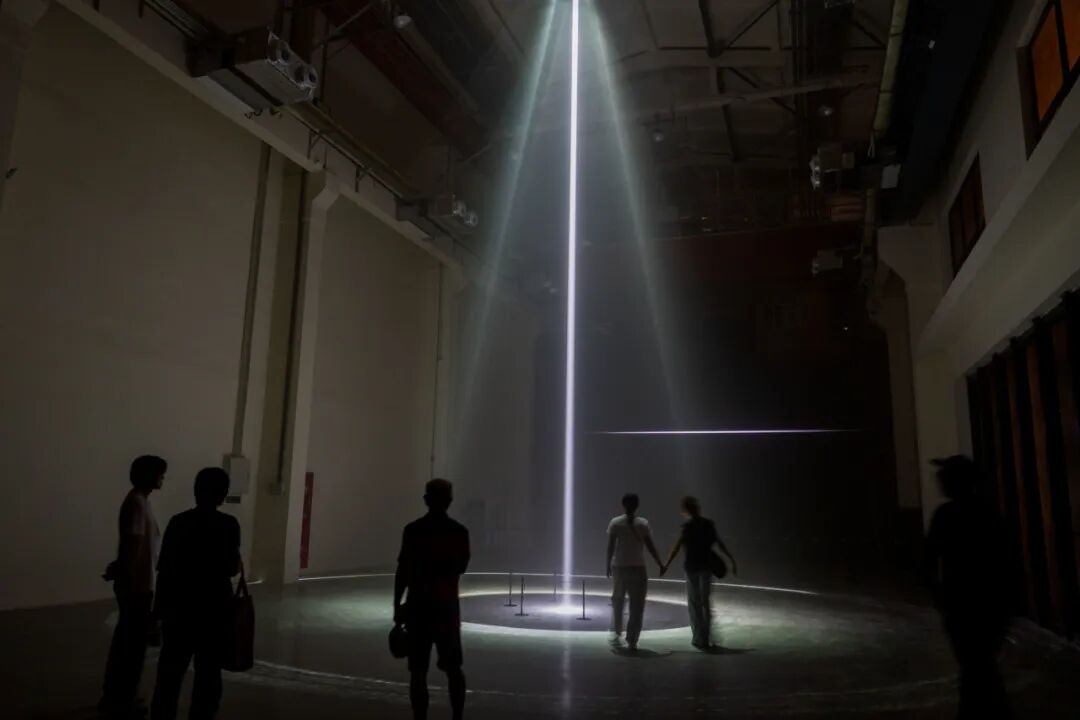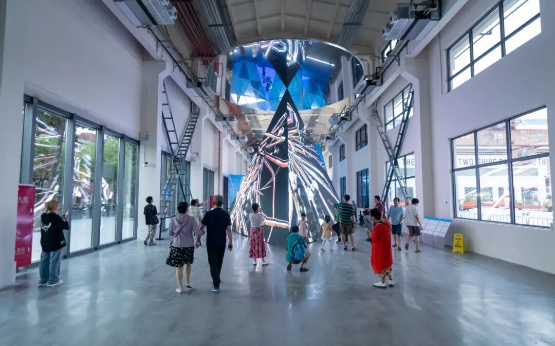 市民一进入B馆便被三棱锥LED装置《量相》所吸引,与表皮的感知数字作品互动,在内部沉浸投影空间里打卡。在虚实贯穿交互体验作品《量子梦境》中,市民进入任一舱体,通过体感交互方式化身为虚拟世界的精灵,完成量子岛探险任务。在B馆的中庭中,市民们对一组颜色绚丽的未来生物《游客》颇为喜欢,除了惊叹于丰富的想象力,更积极地与这些生物对话。建筑尽头的《临界空间》创造了一个光与声的场域,很多市民反馈说仿佛进入了奇妙的世界,联想到了宇宙变幻、历史变迁。