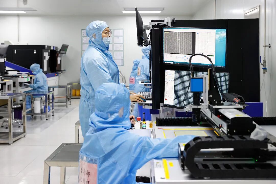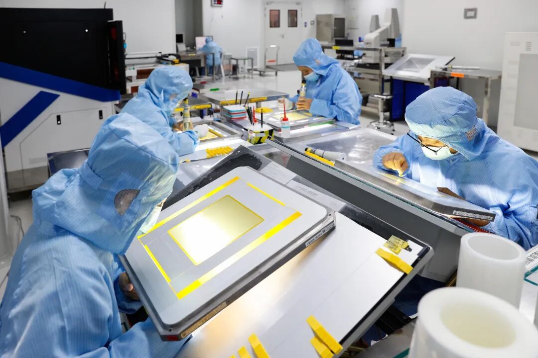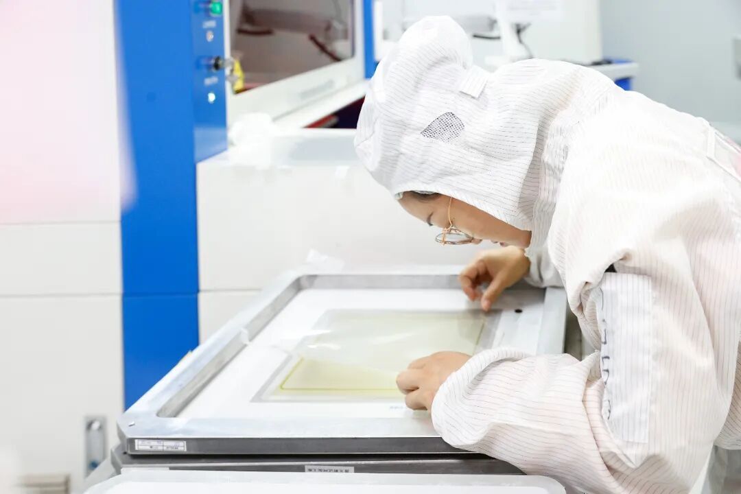 10月10日,位于松江经开区的上海新倬壮印刷科技有限公司生产车间一派繁忙景象。技术人员们正在打开自动激光蚀刻机以及用自动检测设备检测精密的光伏网版。