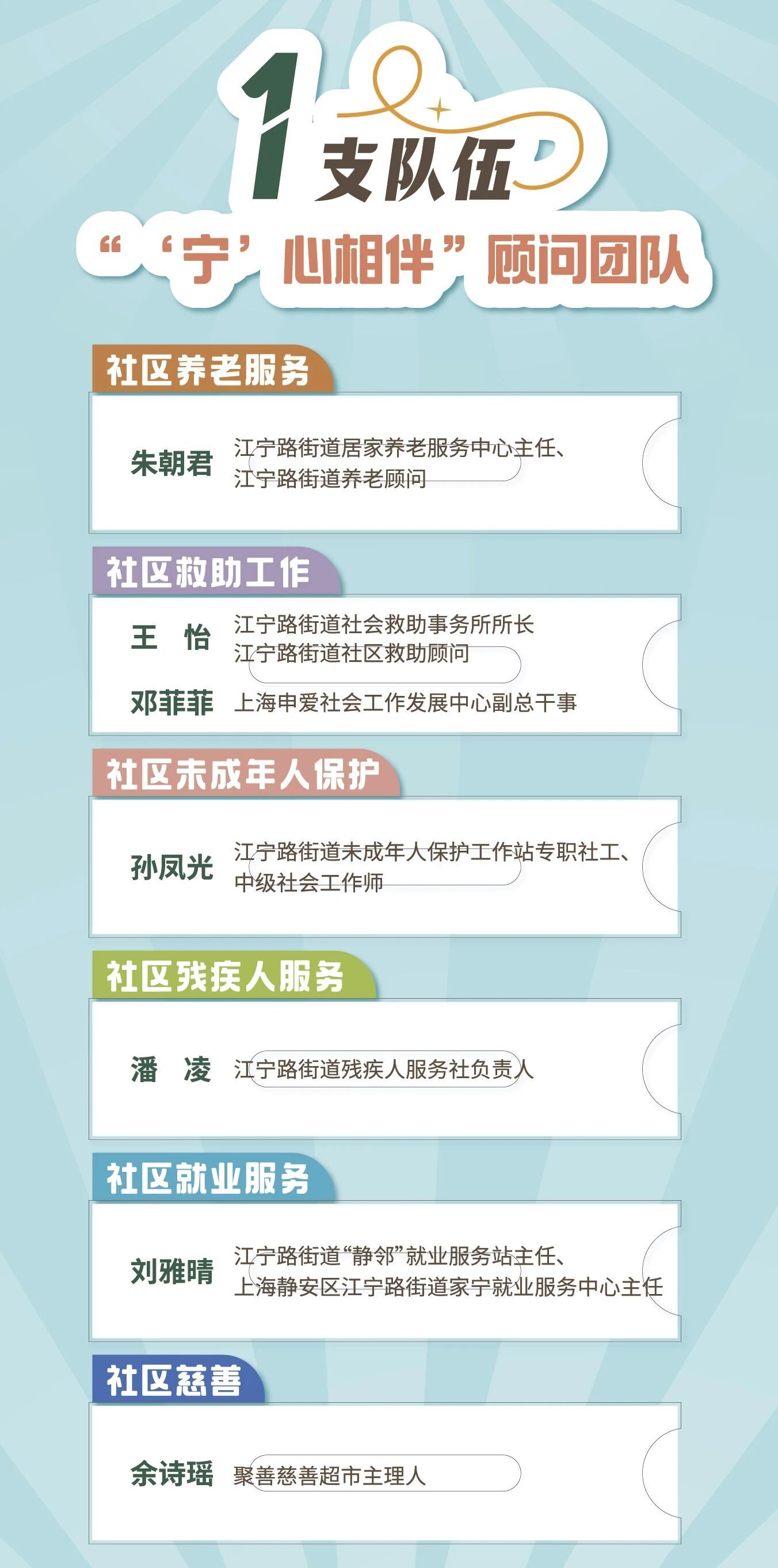 “1”支专业团队为基础:成立“宁”心相伴救助顾问团队,邀请社区养老、救助、未保、残疾人、就业、慈善等民生服务领域专业人士,为社区居民提供专业化民生服务。